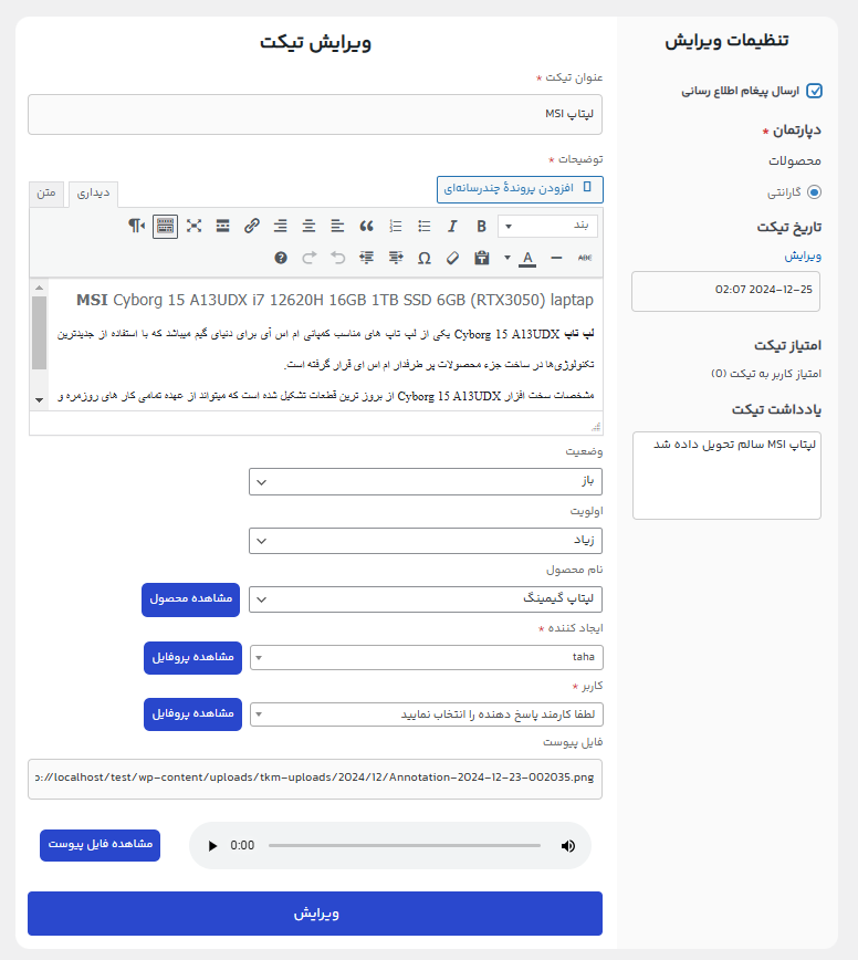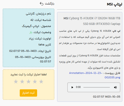 ارسال پیام صوتی پیشرفته در هنگام ثبت تیکت