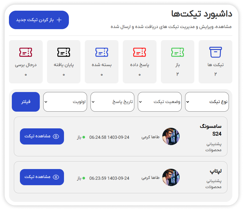 ارسال بینهایت تیکت پشتیبانی دوطرفه